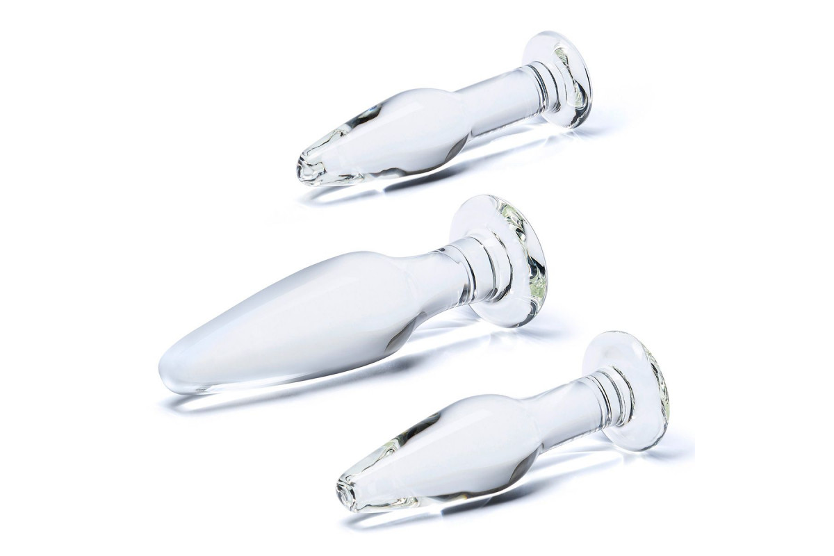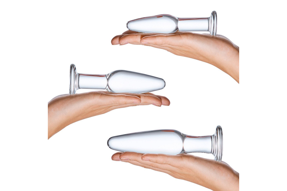 Если вы хотите сделать следующий большой шаг в анальной игре, тогда вам обязательно нужно иметь анальный тренировочный набор. Этот стеклянный анальный тренировочный набор из трех предметов проведет вас через три различных уровня и подарит невероятные ощущения наполненности. Длина большой пробки - 14 см., диаметр - 3 см.