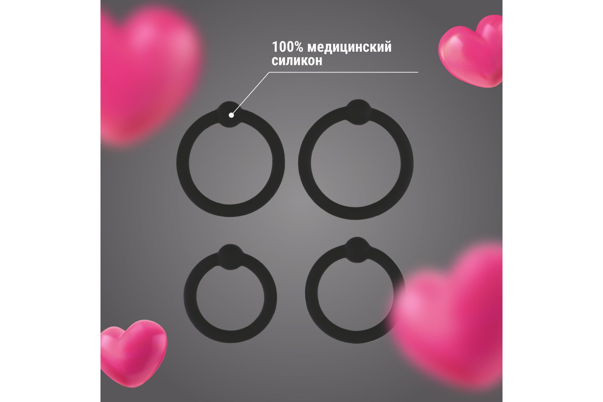 Добавьте наш набор из 4 черных силиконовых эрекционных колец в свою коллекцию и откройте новые горизонты удовольствия уже сегодня!