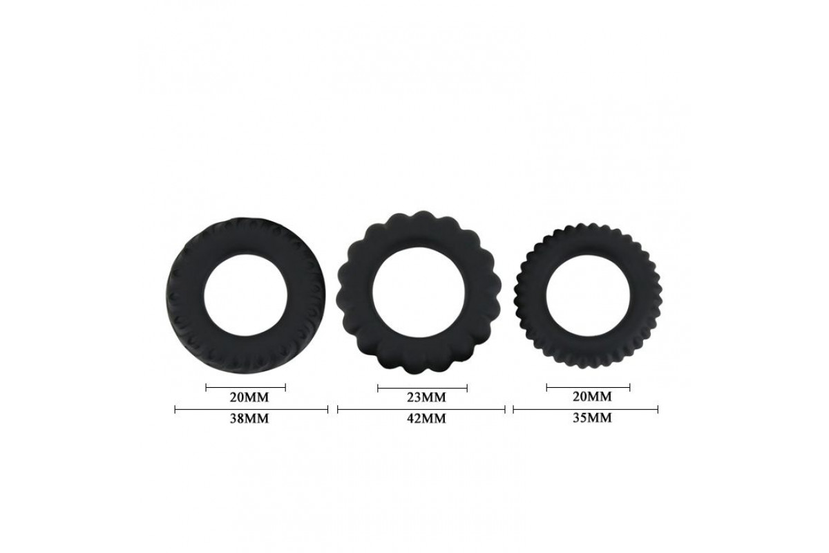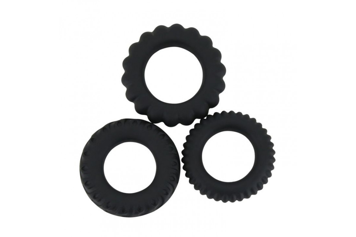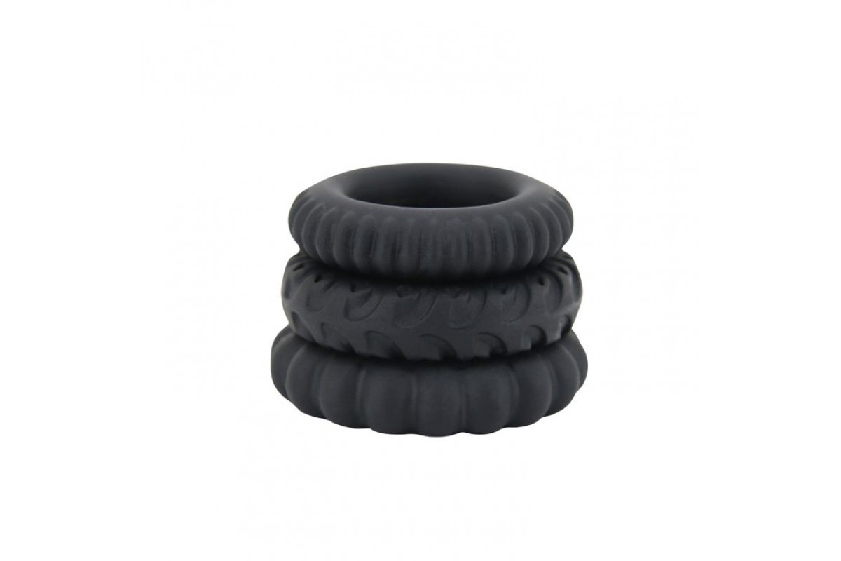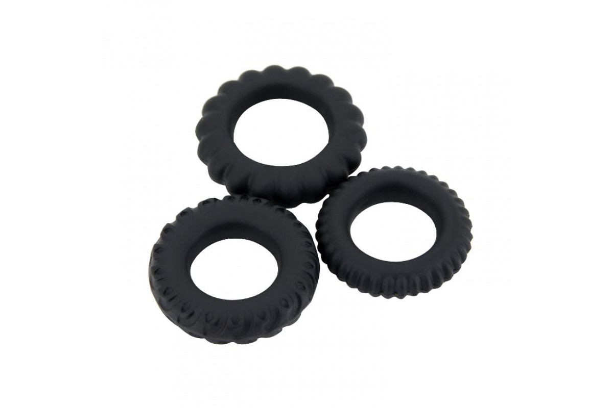 Откройте для себя уникальный опыт с набором Titan из 3 эрекционных колец, созданных для тех, кто ценит не только удовольствие, но и оригинальность. Эти эрекционные кольца в стиле автомобильных шин станут ярким акцентом в вашей интимной жизни и подарят новые ощущения.