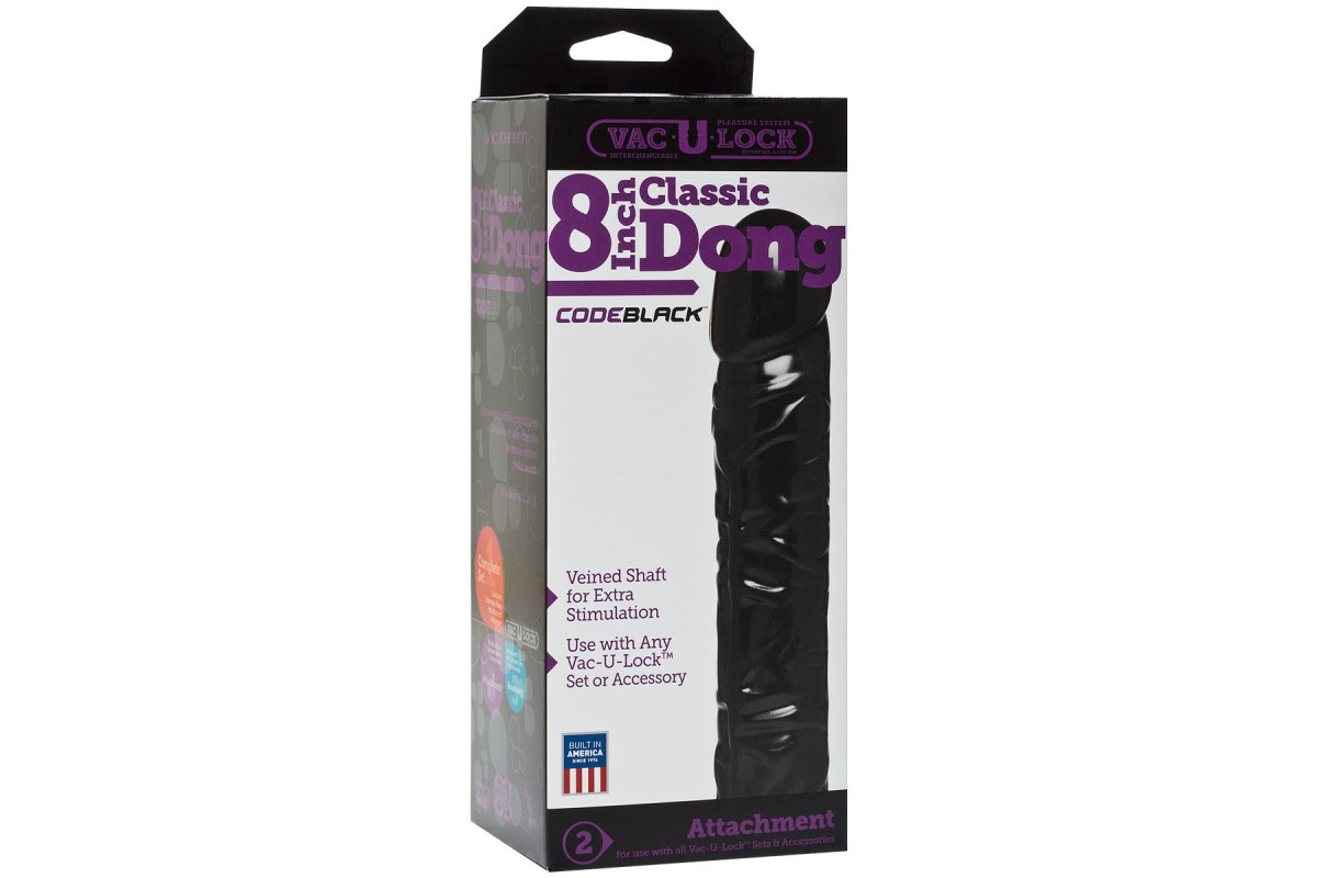 Насадка-фаллоимитатор Vac-U-Lock CodeBlack 8 Inch Classic Dong — Ваш идеальный выбор для насыщенных ощущений