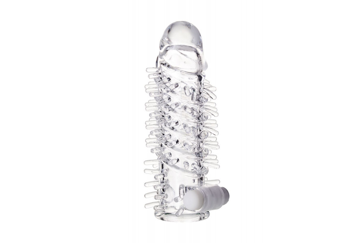 Насадка на пенис TOYFA A-Toys с вибропулей и шипами - 13,4 см.