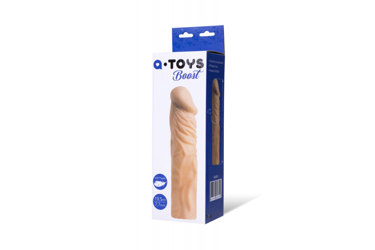 Посмотрите на эти прожилки, ярко очерченную головку, тонкую сеточку вен. Вкупе с бархатистым материалом практически не различишь реальное тело и созданную с любовью насадку A-Toys. Используйте насадку для удлинения или утолщения полового члена, как метод контрацепции, как новое мягкое покрытие любимого вибратора и еще как угодно будет вашей фантазии.