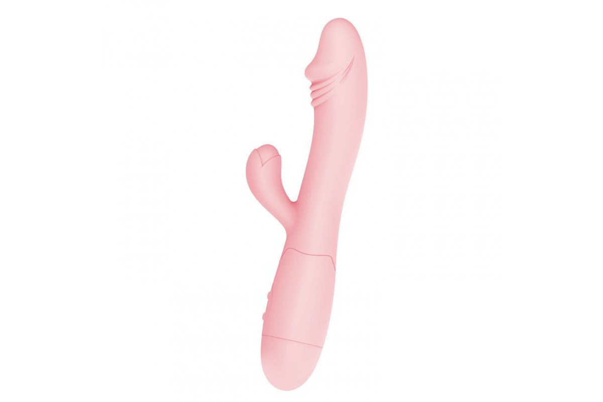 Нежно-розовый перезаряжаемый вибратор Snappy с клиторальным отростком - 19,5 см.