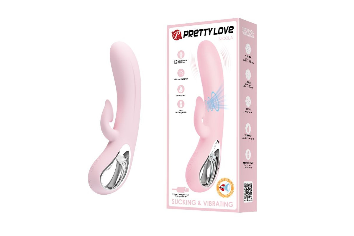 Нежно-розовый вибратор Nicola с вакуумной клиторальной стимуляцией – 24 см
