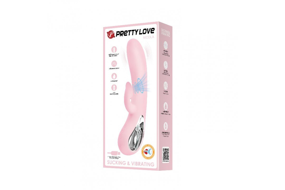 Нежно-розовый вибратор Nicola с вакуумной клиторальной стимуляцией - 24 см.