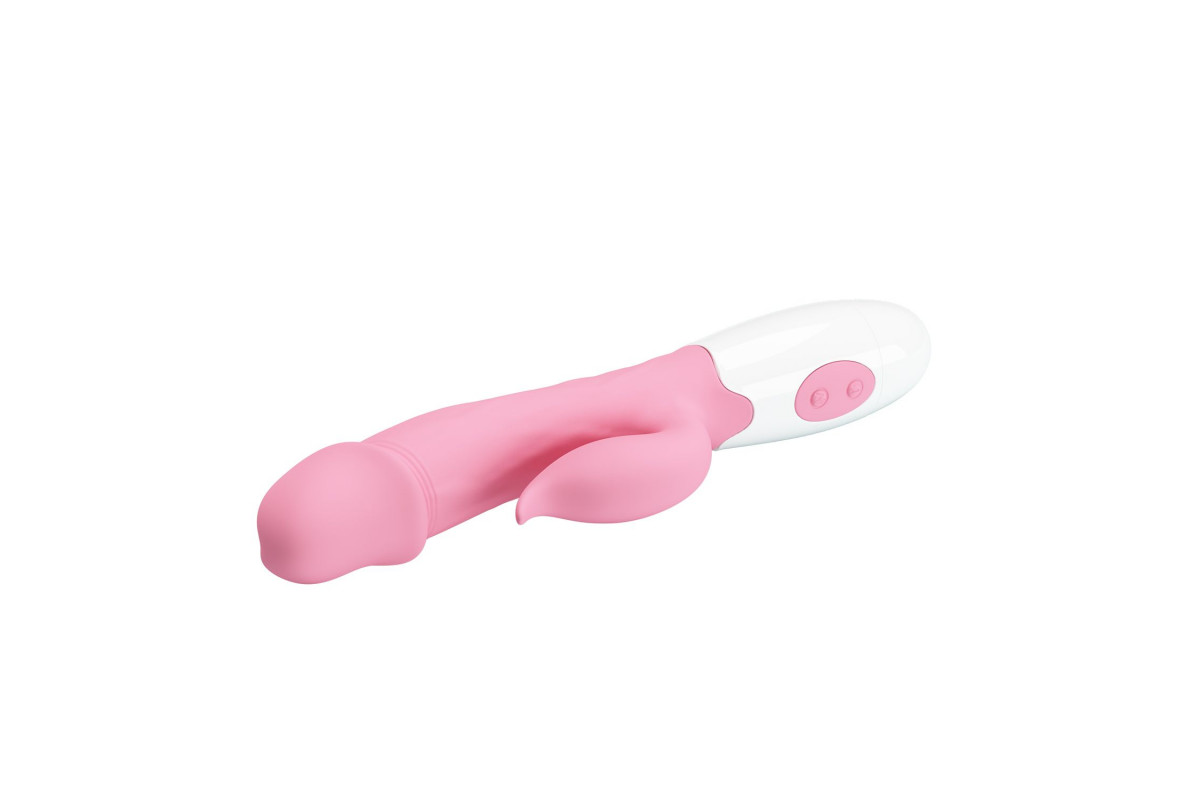 Нежно-розовый вибратор с клиторальным отростком Peter - 19,2 см.