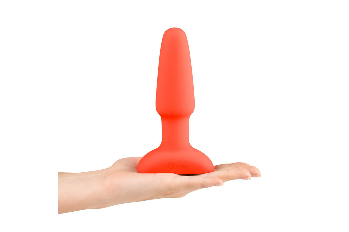Анальный плаг премиум качества, который собрал в себе функции для идеальной анальной стимуляции. Выполнен из гипоаллергенного и гигиеничного шелковистого ярко-оранжевого силикона, имеет надежное ограничительное основание для безопасного удовольствия. Пробка может управляться с радио-пульта, который есть в комплекте (радиус действия до 9 м), а может управляться кнопкой, расположенной в основании игрушки. Что же такого особенного в этой пробке? Один из самых чувствительных участков анальной зоны расположен в районе сфинктера. Поэтому людям доставляет такое большое удовольствие римминг. Именно для этого у плага b-Vibe в основании расположены металлические шарики, которые имеют 7 различных паттернов вращения. При этом в головке плага расположен мощный мотор с 6 различными функциями - низкая, средняя и сильная вибрация, постоянная, волноообразная, пульсирующая и нарастающая вибрация, также колебательный и произвольный режимы, каждый из которых может работать на 6 скоростях. Моторчик в головке и вращение шариков могут работать одновременно, а могут по отдельности. Рабочая длина - 9,3 см.