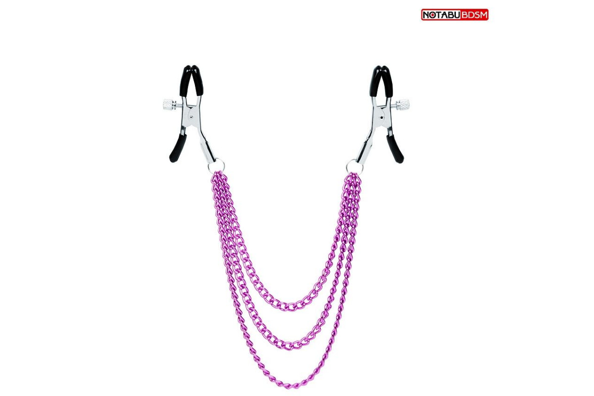 Оригинальные зажимы на соски с тройной розовой цепочкой