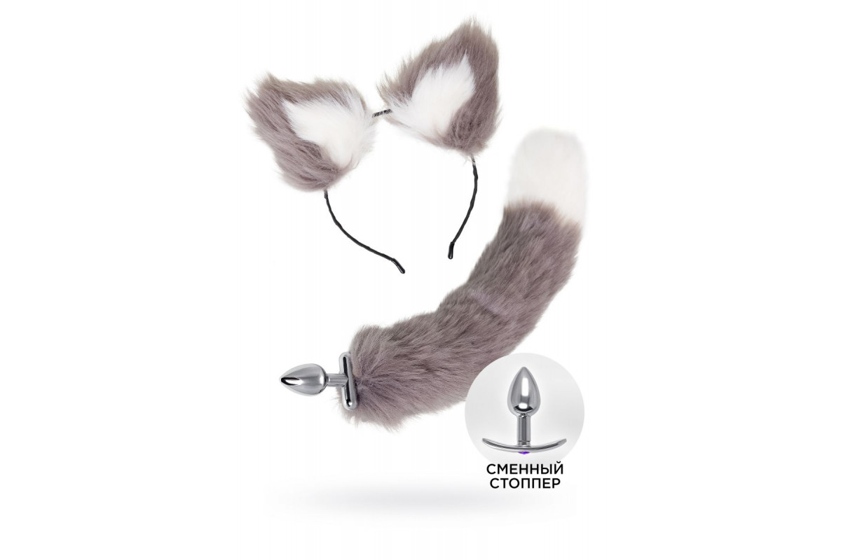 Оригинальный комплект для взрослых: анальная пробка с сменными ограничителями и ободок с ушками