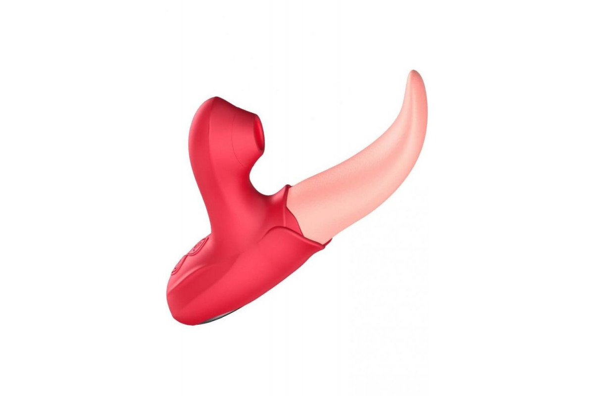 Оригинальный вибратор-язык с вакуумной стимуляцией клитора – 18 см