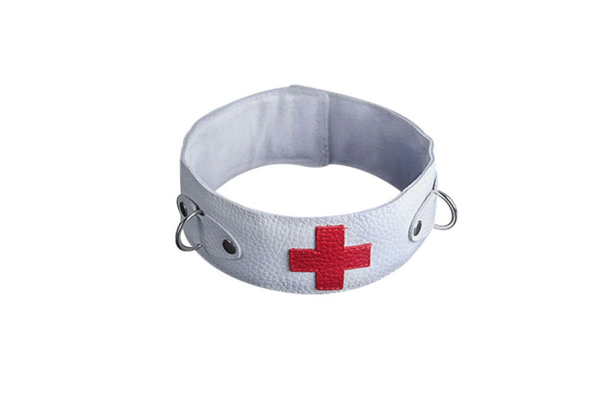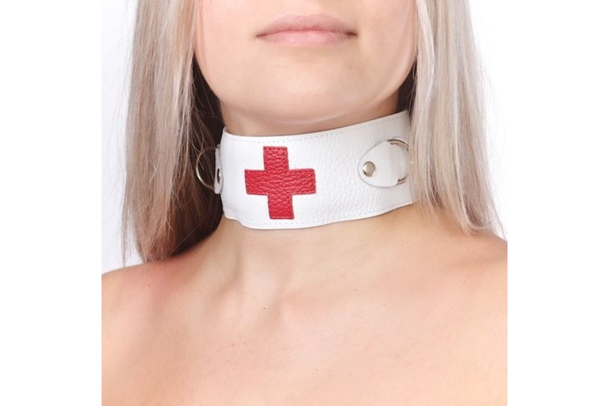 Ошейник с кольцами и красным крестом — стильный аксессуар для взрослых
