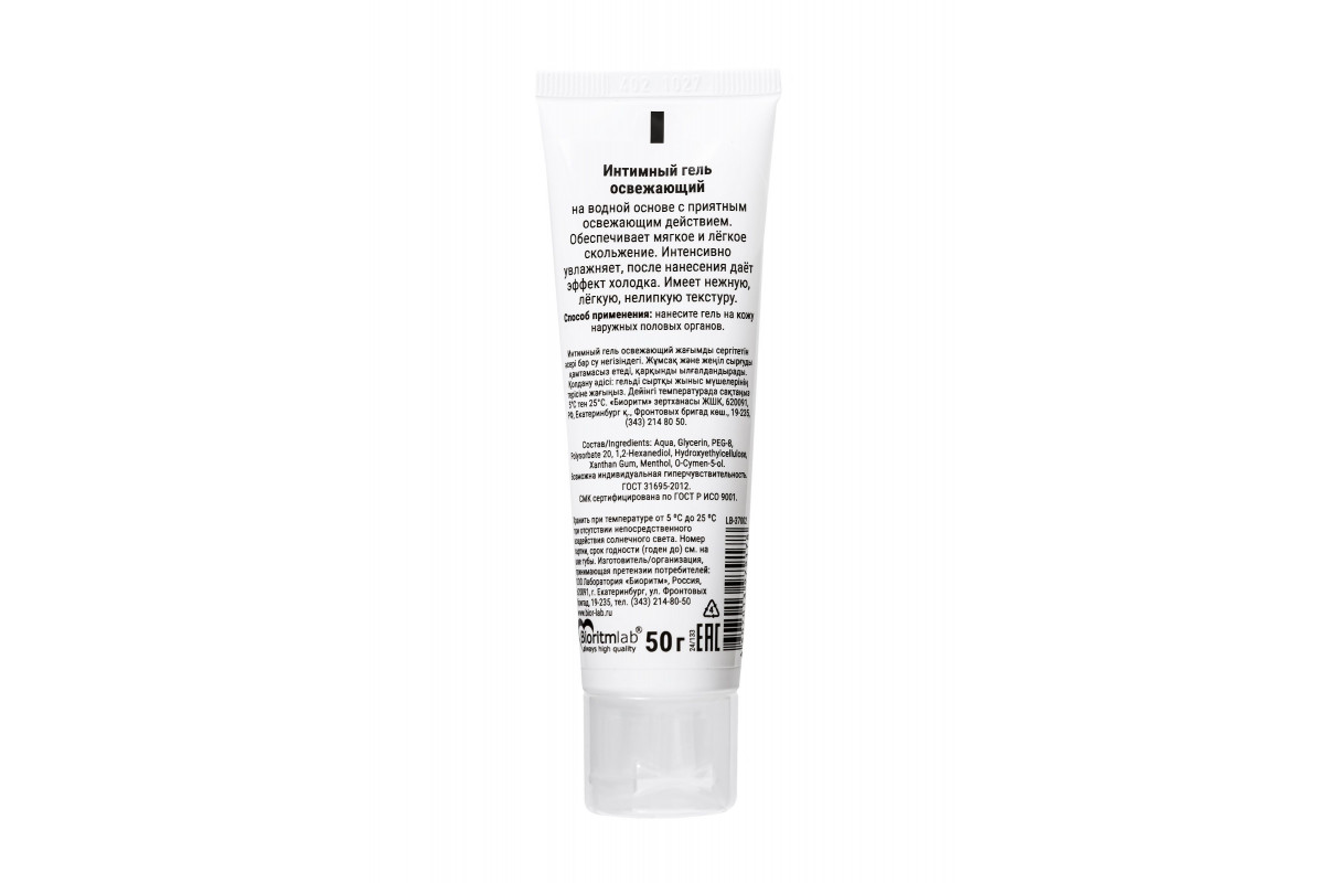 - Состав: Aqua, Glycerin, PEG-8, Polysorbate 20, 1,2-Hexanediol, Hydroxyethylcellulose, Xanthan Gum, Menthol, O-Cymen-5-ol
