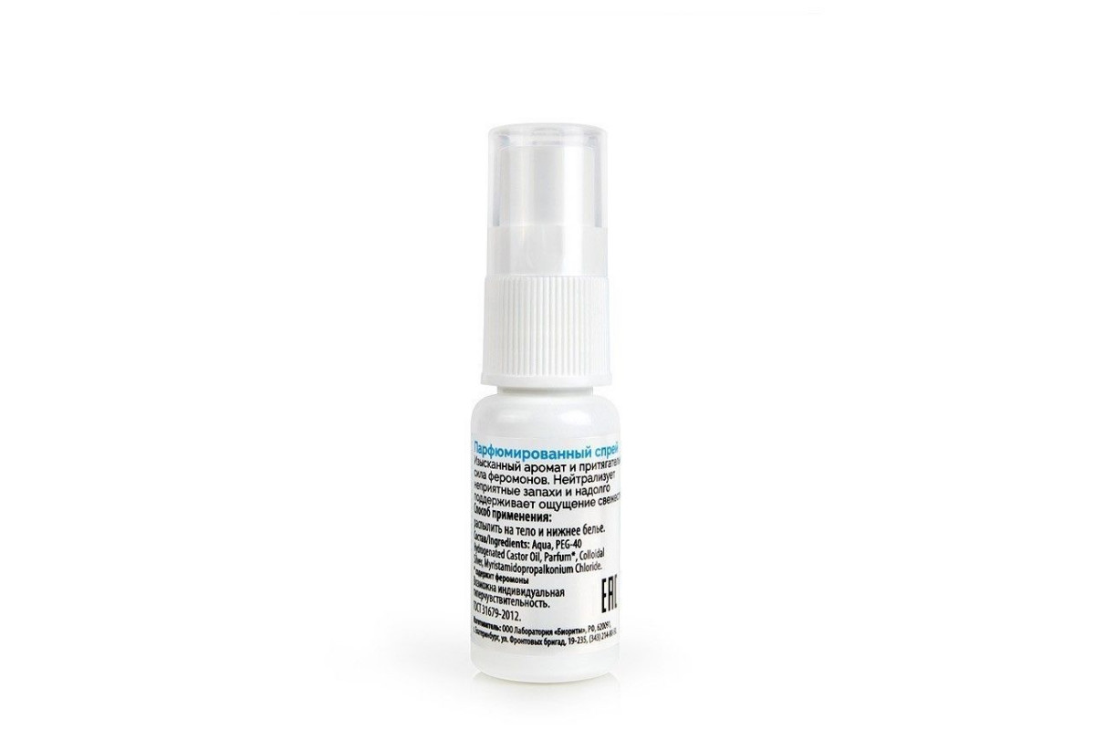 - Инструкция: распылить небольшое количество спрея на тело и нижнее белье.