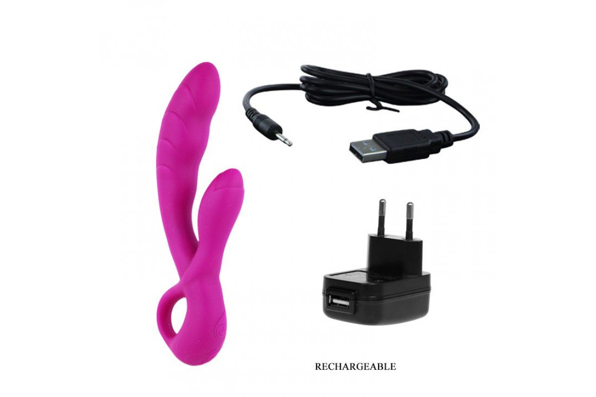 Вибромассажер эргономичной формы, средних размеров. Предназначен для одновременной стимуляции точки G и клитора, на теле массажера имеются три утолщения для точечного приложения вибраций. Имеет увеличенную в диаметре головку с волнообразными ребрышками для стимуляции точки G.