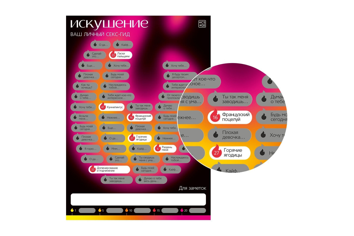 - Интерактивный дизайн — скретч-слой скрывает секретные советы и идеи для романтических игр.