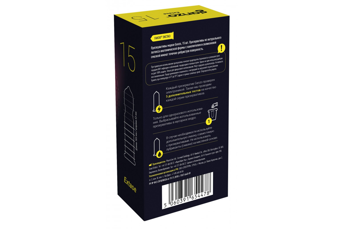 Презервативы анатомической формы с точечной и ребристой структурой Ganzo Extase - 15 шт.