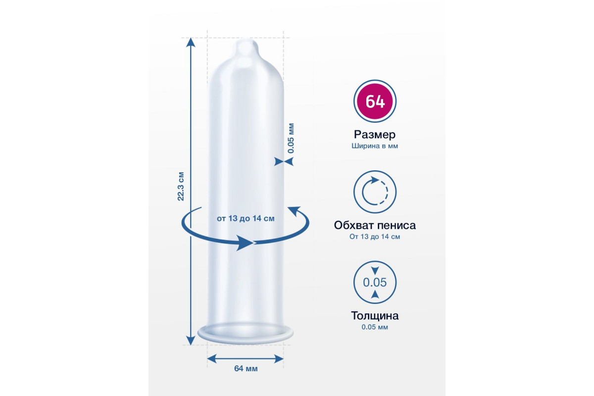 - Идеальная посадка – благодаря размеру 64, презервативы отлично подходят для мужчин с более крупным размером, обеспечивая комфорт и безопасность.