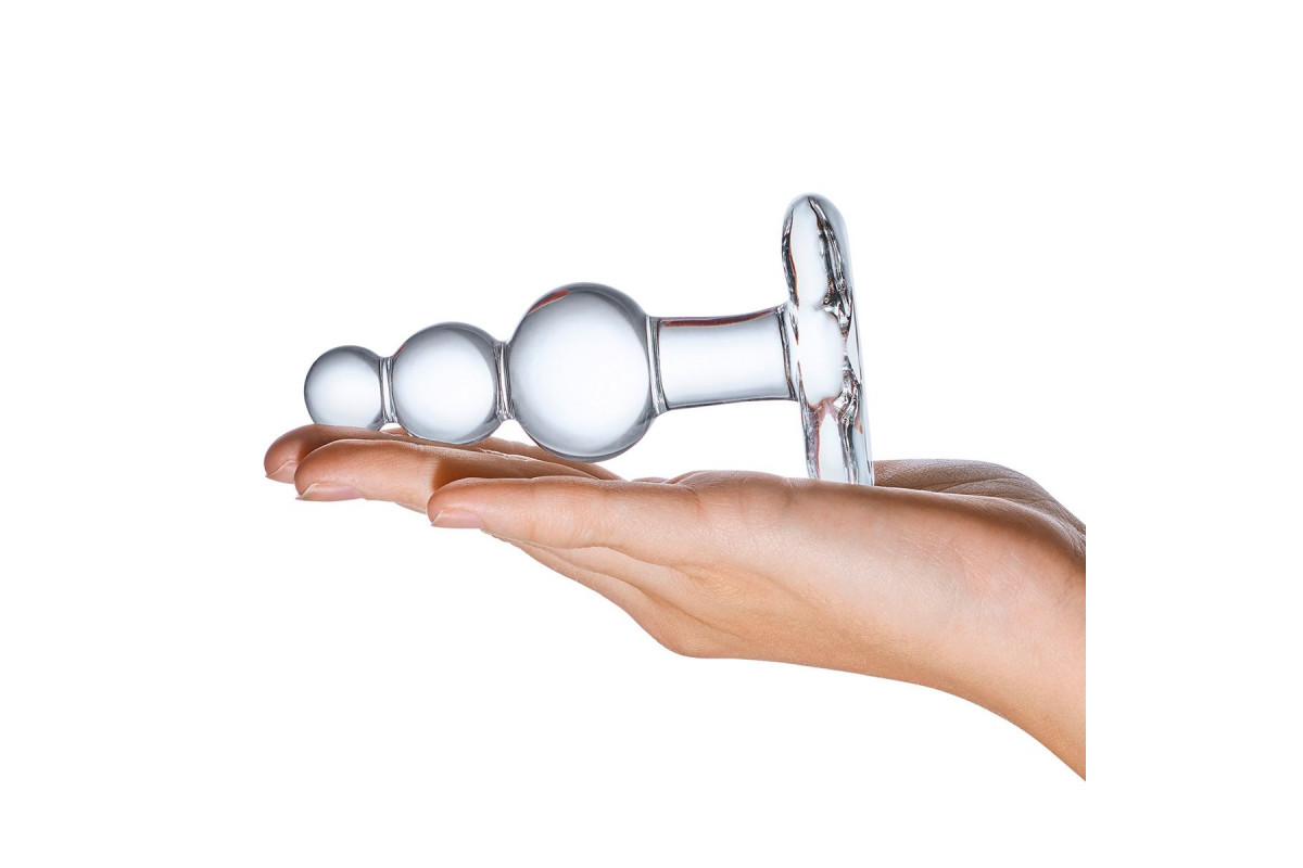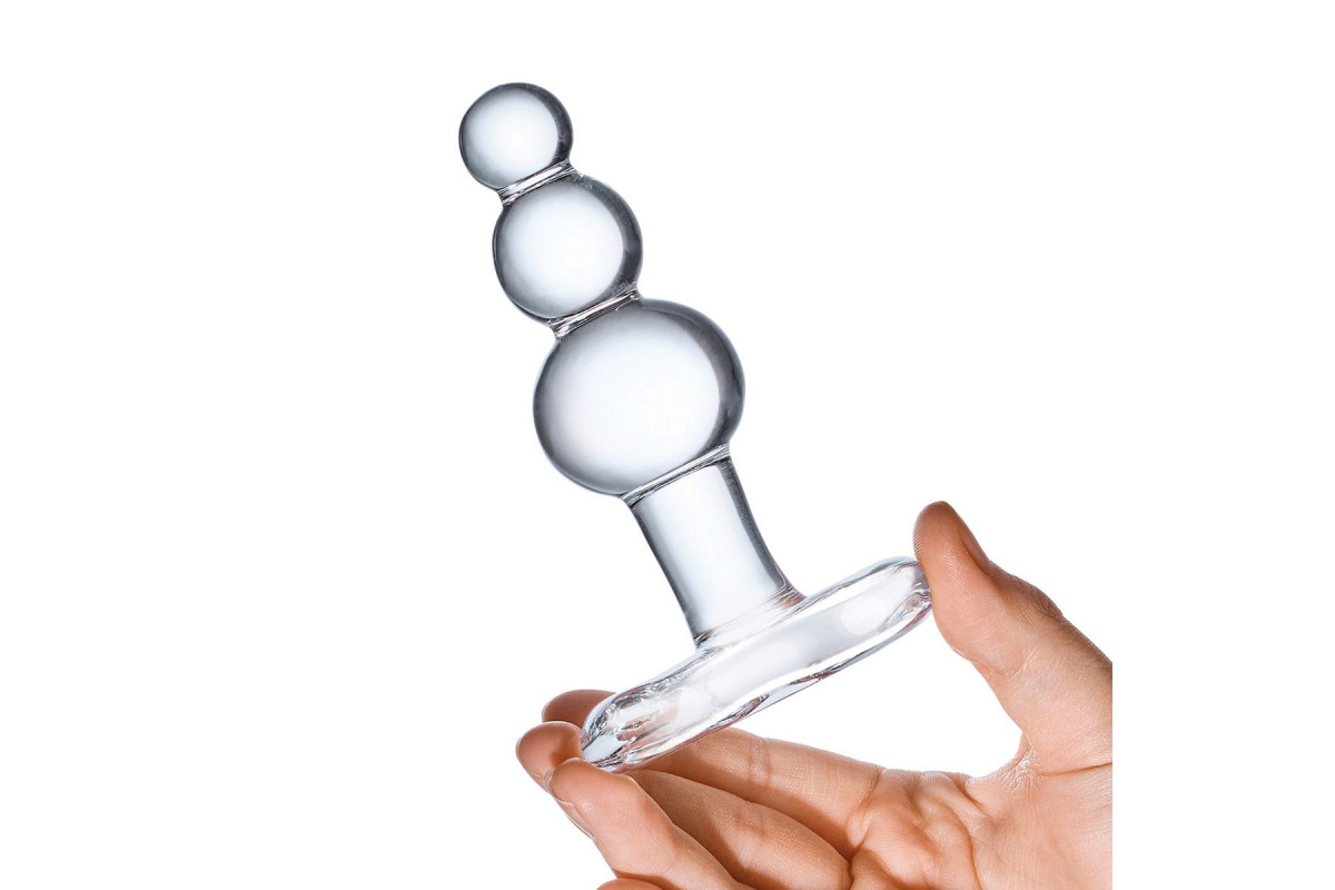 Удовлетворите свое любопытство и приготовьтесь удивить себя качественной анальной стимуляцией этой 4-дюймовой анальной пробкой с тремя шариками разного диаметра. Благодаря ее конической Т-образной основе вы можете с комфортом и уверенностью пробовать бусины разных размеров и открывать новые уровни удовольствия. Анальный стимулятор-елочка сделан вручную, из боросиликатного стекла повышенной прочности. Имеет достаточную длину, чтобы достать до самых важных точек наслаждения. Конический кончик облегчает введение стимулятора. Стекло очень гигиеничный и гипоаллергенный материал. Используйте свою любимую гель-смазку, на любой основе, материал непористый и гладкий, устойчив к интимным гелям на любых основах: водной, силиконовой, масляной или гибридной. Нагрейте или охладите свою интимную игрушку, и ваши ощущения буду меняться от раза к разу при использовании. После использования промойте под струей воды, с любым моющим средством, высушите и уберите в специальный тканевой мешочек, который вы найдете в комплекте. Рабочая длина - 9,5 см.