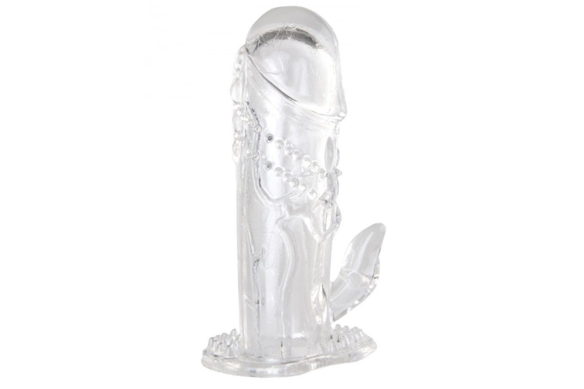 Прозрачная гелевая насадка с клиторальным отростком - 13 см.