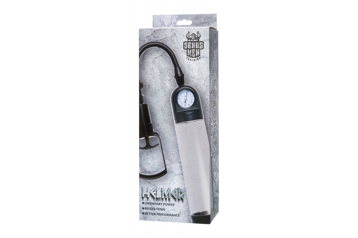 С помпой Helmer серии Sexus Men Training легко управлять своими тренировками по пенбилдингу, усиливать эрекцию и получать новые ощущения от полового акта. Для тренировки, а также чтобы подготовить себя к длительному и яркому сексу, вставьте свой пенис в колбу и откачайте воздух с помощью рычага. Благодаря отрицательному давлению увеличивается приток крови к половому члену, за уровнем давления удобно следить с помощью встроенного манометра.