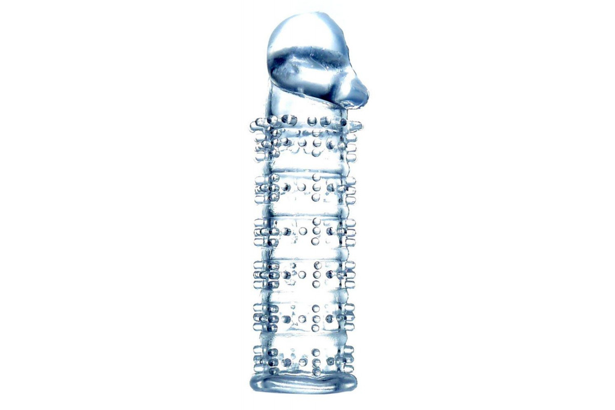 Прозрачная насадка на пенис с рельефом - 12 см.