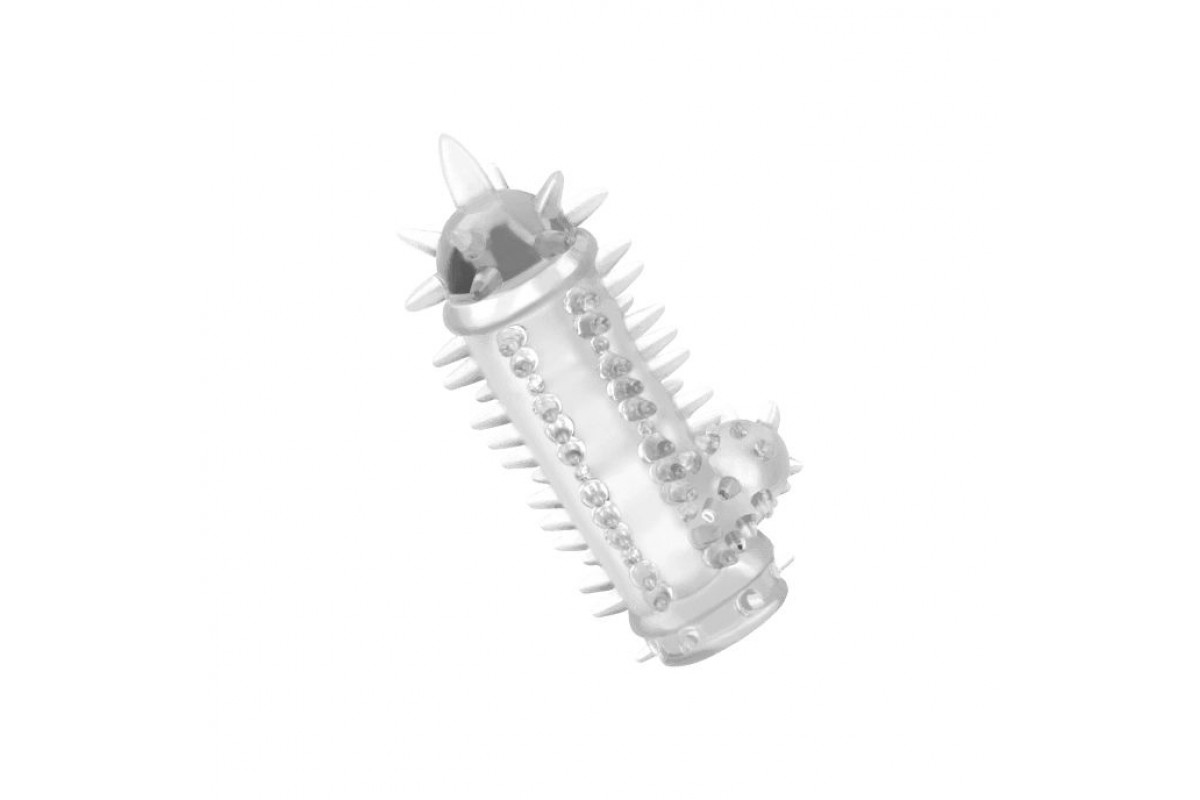 Прозрачная насадка с шипами и клиторальной шишечкой CLIT-BANGER SLEEVE IN CLEAR