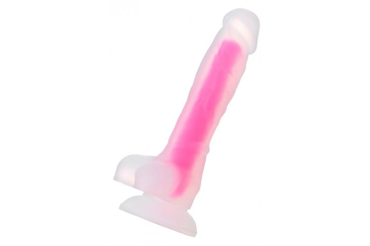 Прозрачно-розовый фаллоимитатор, светящийся в темноте, Clark Glow - 22 см.
