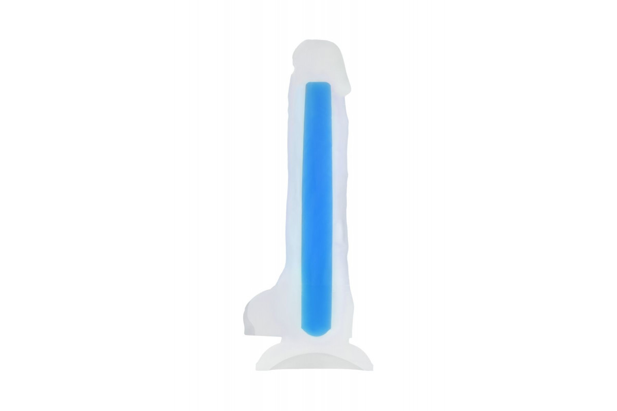 Прозрачно-синий фаллоимитатор, светящийся в темноте, Bruce Glow - 22 см.