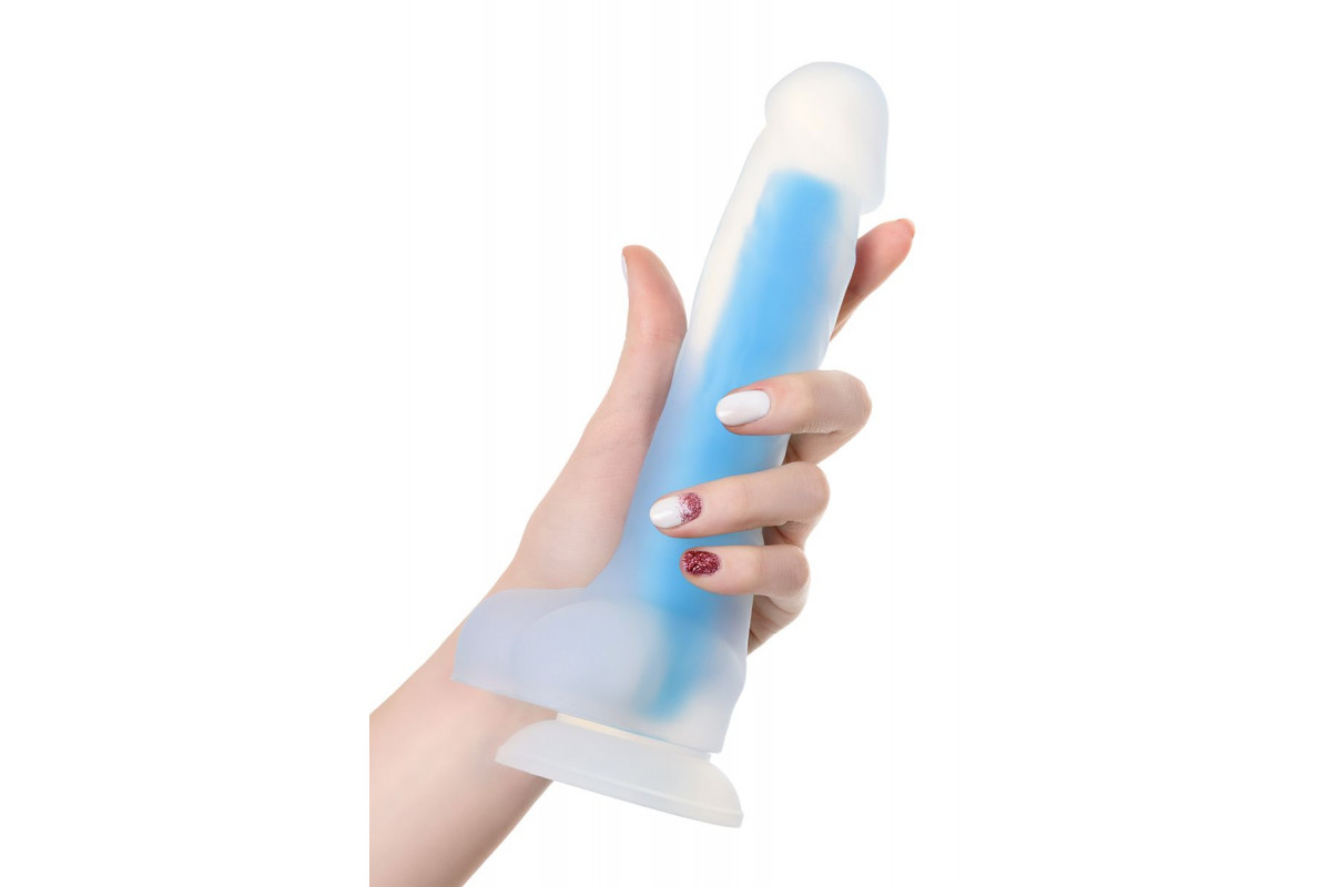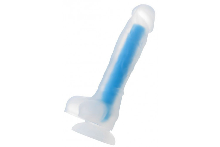 Прозрачно-синий фаллоимитатор Bruce Glow — яркое дополнение для особых моментов