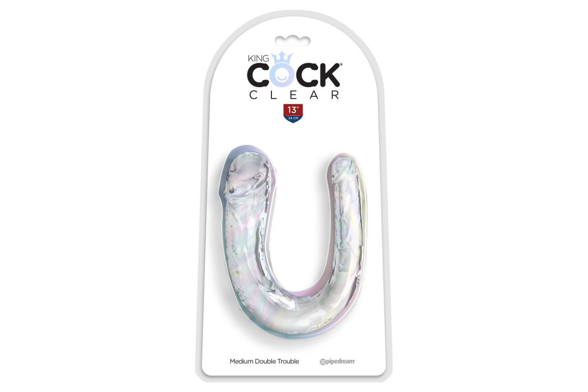 Прозрачный двусторонний фаллоимитатор Medium Double Trouble – 33 см