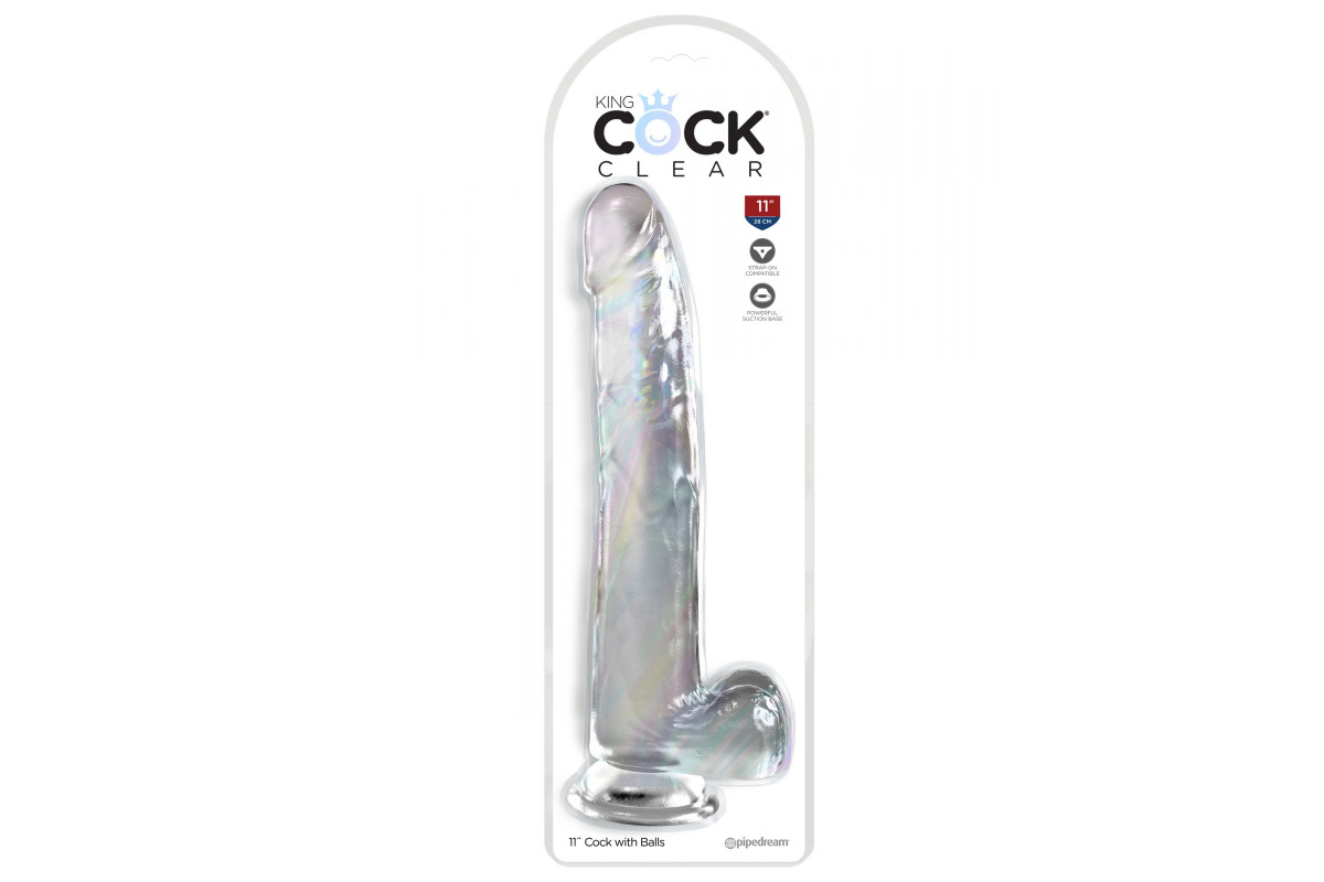 Прозрачный фаллоимитатор с мошонкой на присоске 11’’ Cock with Balls – 30,5 см