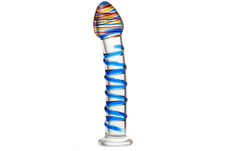 Прозрачный фаллос из стекла со спиралью - 18 см.