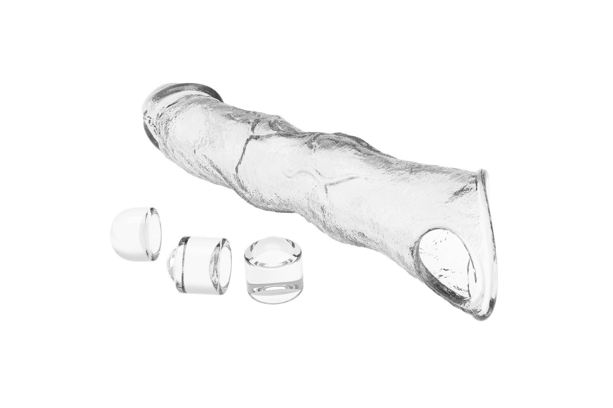 Прозрачный фаллоудлинитель с 3 вставками — откройте новые горизонты удовольствия