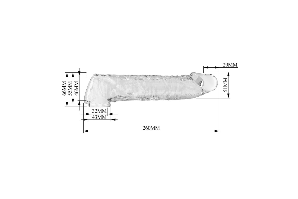 Какие точные размеры у товара Прозрачный фаллоудлинитель с подхватом мошонки Silas - 26 см. и кому он подойдёт?