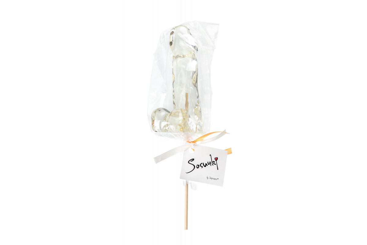 Игривый и озорной леденец в форме фаллоса от Sosuчki со вкусом пина колада подарит неимоверно задорное настроение окружающим! Яркий, сочный, почти как настоящий, но только съедобный. Он вызывают бурю эмоций и увеличивает уровень эндорфинов не только манящим вкусом, но и своим реалистичным видом. Леденец изготовлен полностью вручную, без применения сахара. В составе только безопасные ингредиенты, разрешенные даже диабетикам. Не приторный, в меру сладкий вкус влюбляет каждого, кто познакомится с этим леденцом. Каждый леденец упакован в индивидуальную пленку с изящной лентой. Такая пикантная сладость на бамбуковой палочке - идеальный вариант в качестве озорного презента к любому празднику, тематической вечеринке или фотосессии. Высота леденца - 12,5 см.