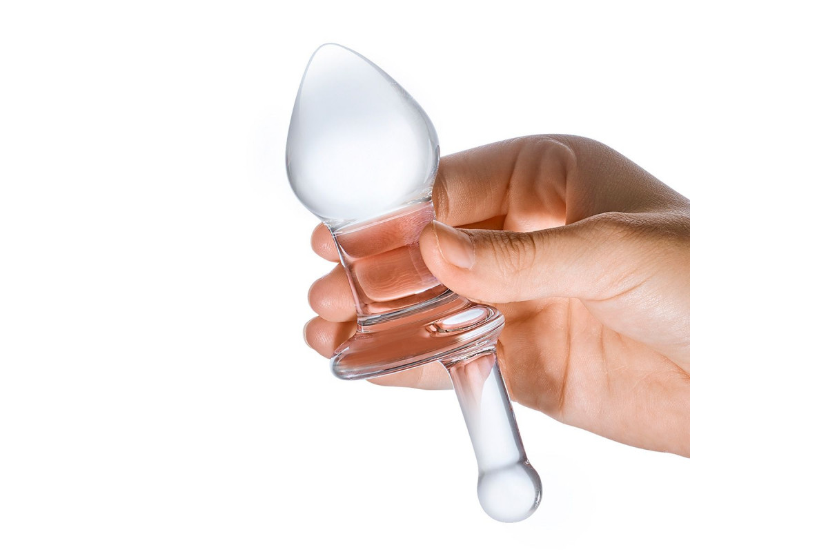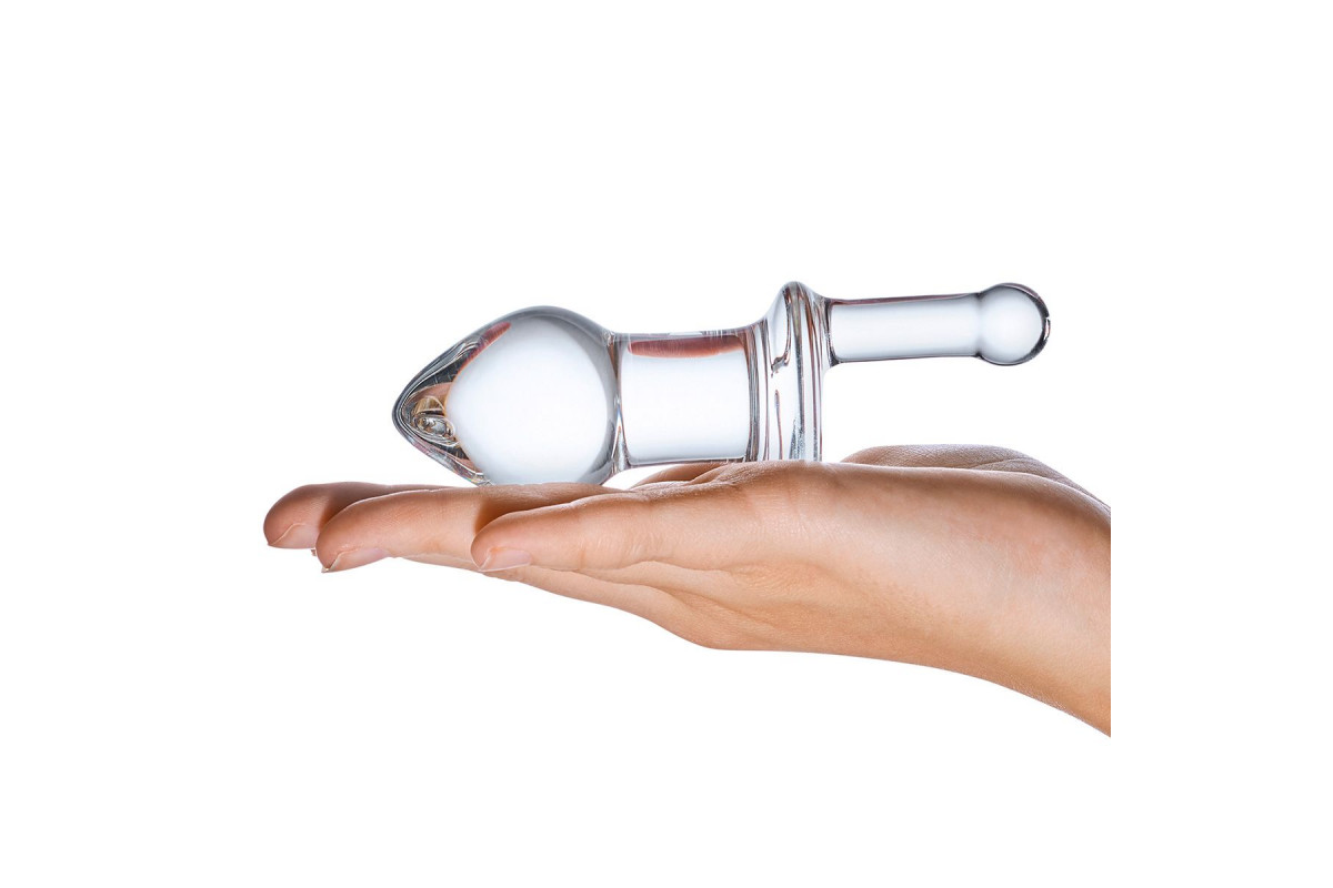 Прозрачный стеклянный анальный плаг с ручкой Glass Juicer - 12,7 см.