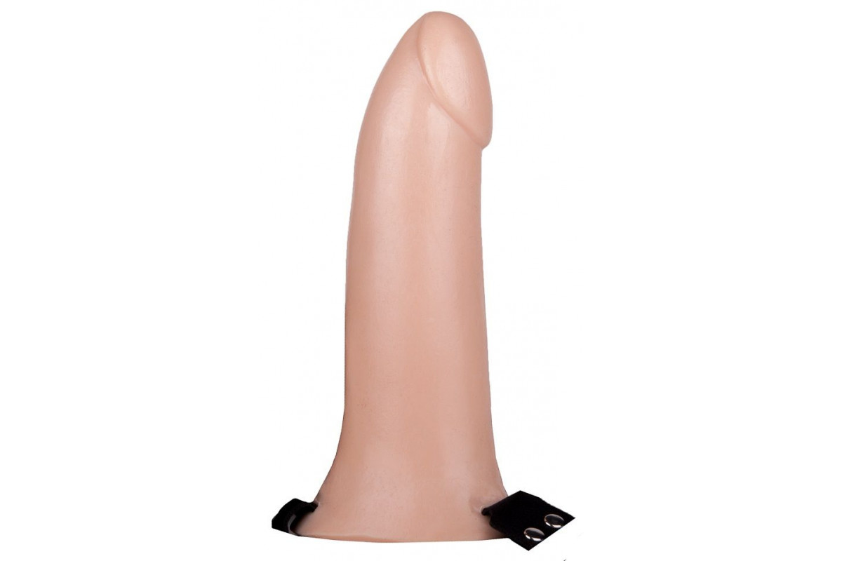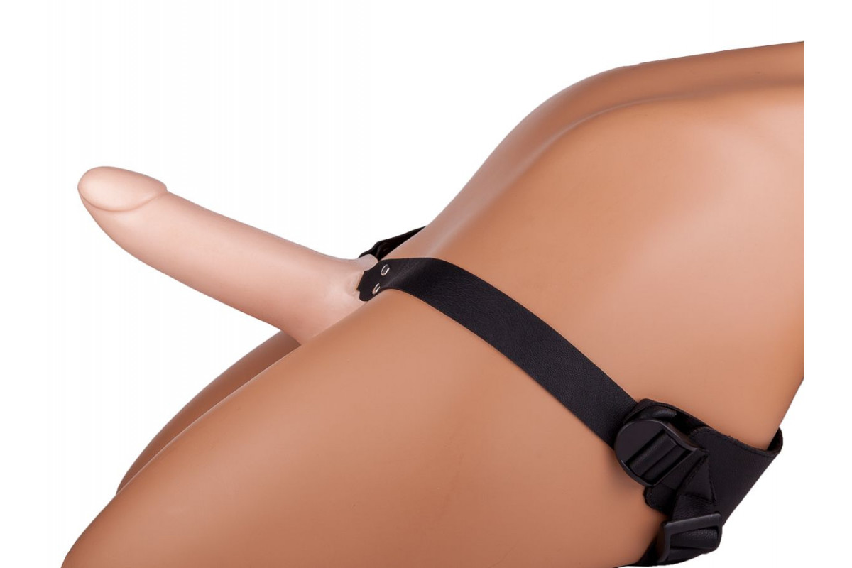 Пустотелый реалистичный фаллопротез на ремешках с заклепками - 17 см.