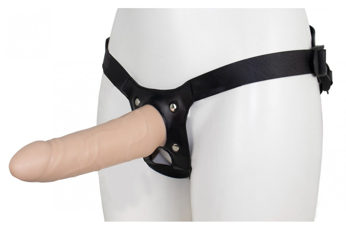 Введение полового члена возможно обеспечить в пустом эластичном каркасе. Каркас (пустотелый фаллоимитатор) зафиксирован на поясе. В платформе пояса имеется отверстие для мошонки. Харнесс имеет регулировки натяжения, плотную посадку, мини-бандаж и, что очень важно – фастекс. Это расстегивающаяся пряжка позволяет мгновенно снять пояс и продолжить половой акт в естественном режиме. Если эрекция не достигает нужной величины, то страпон обеспечит всю продолжительность интимного контакта.