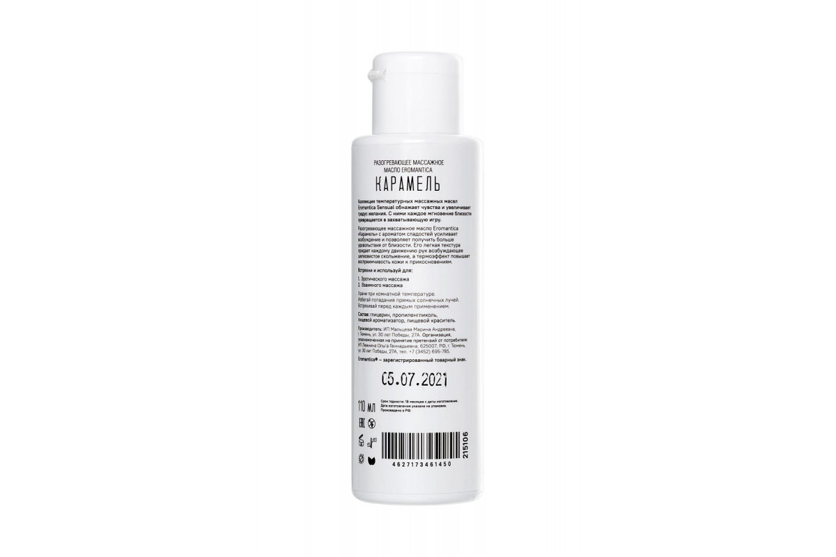 Подарите себе и своему партнеру новые ощущения и яркие эмоции с разогревающим маслом Eromantica «Карамель» — вашим секретом страсти и нежности.