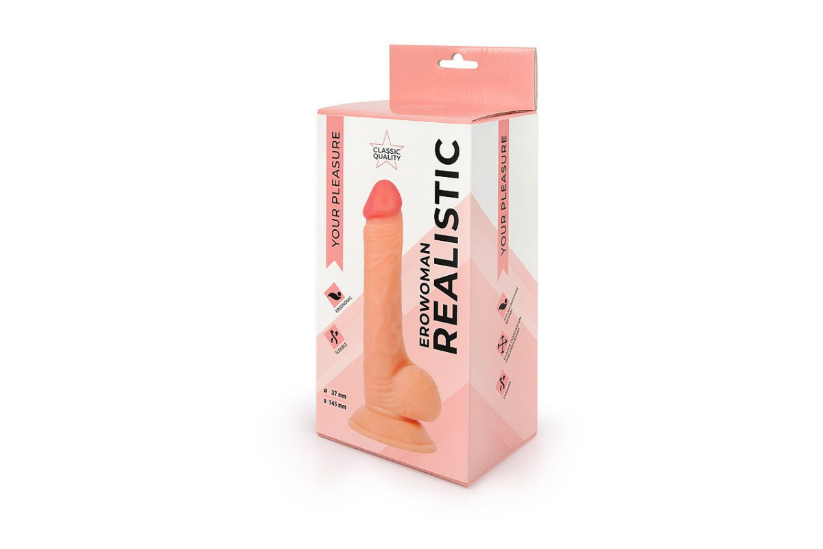 Реалистичный фаллоимитатор Erowoman с мошонкой на присоске — 20 см