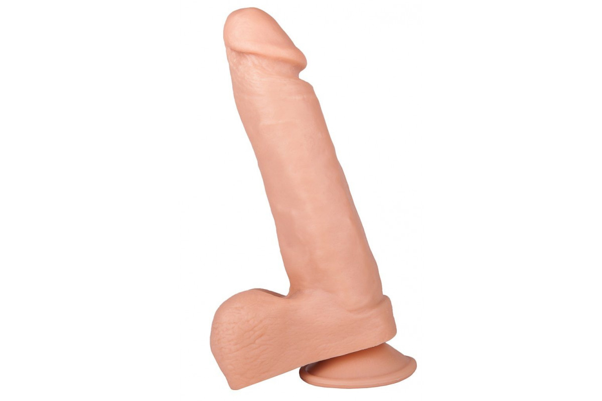 Реалистичный гелевый дилдо с мошонкой и присоской — 21 см