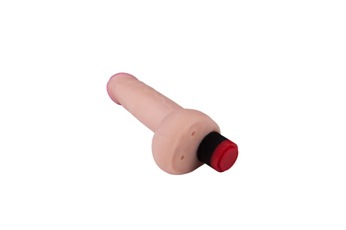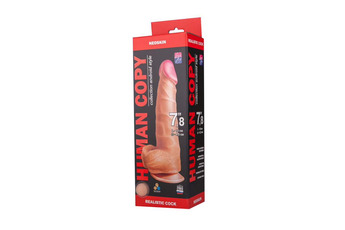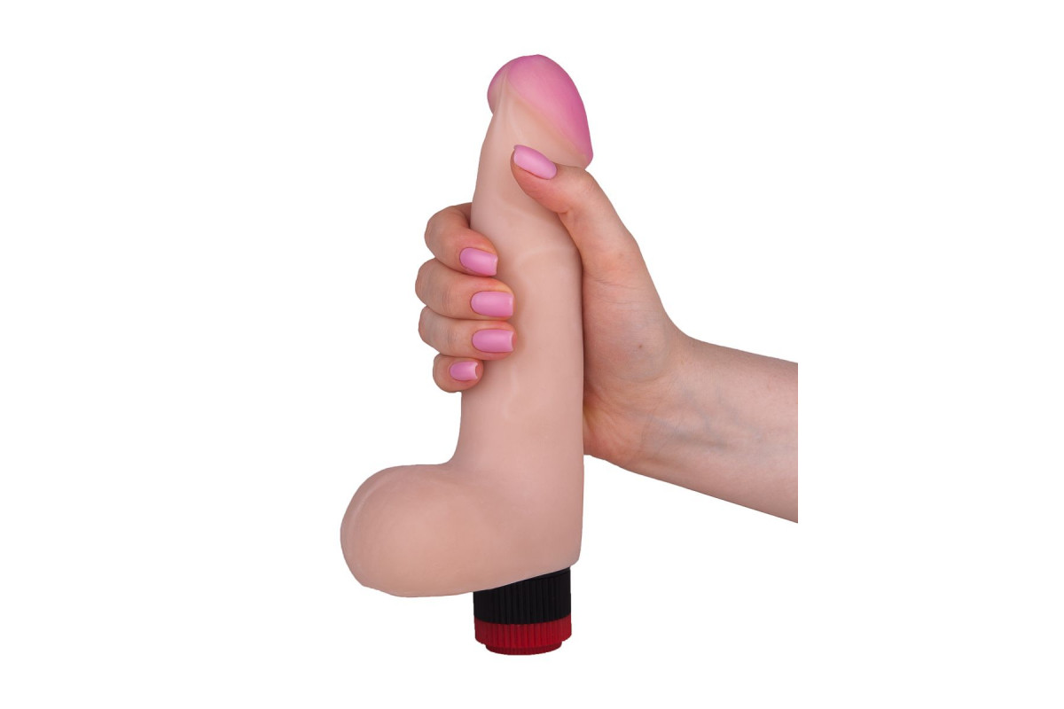 Вибромассажёр выполнен из неоскин – киберкожи последнего поколения. Вот почему и крупная розовая головка, и плотный ствол, и даже мошонка так нежны и бархатисты, как настоящая плоть.