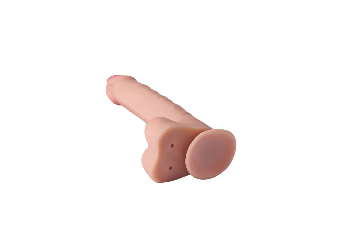 Фаллоимитатор имеет нежную розовую головку, чуть вытянутую мяконькую мошонку и податливый ствол. Вены на нём расположены только в верхней части - чтобы проникновения были особенно чувственными по передней стеночке лона.