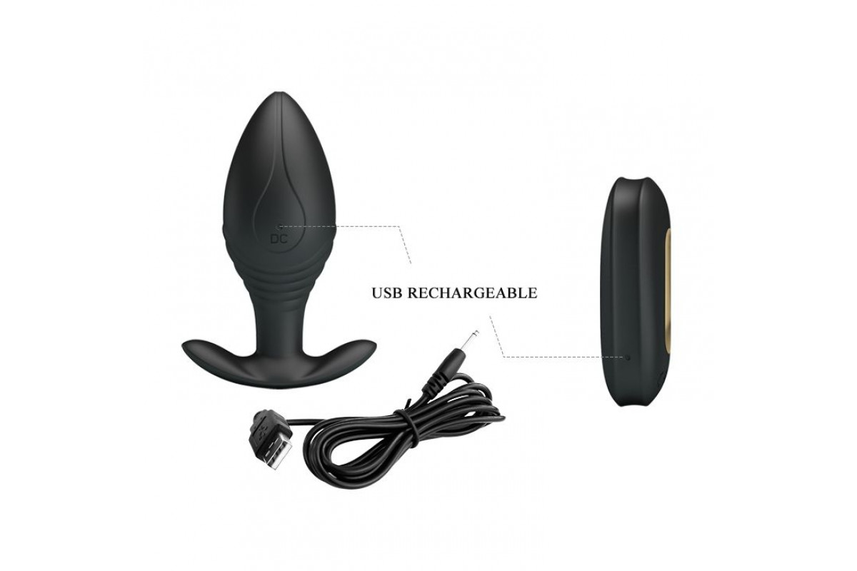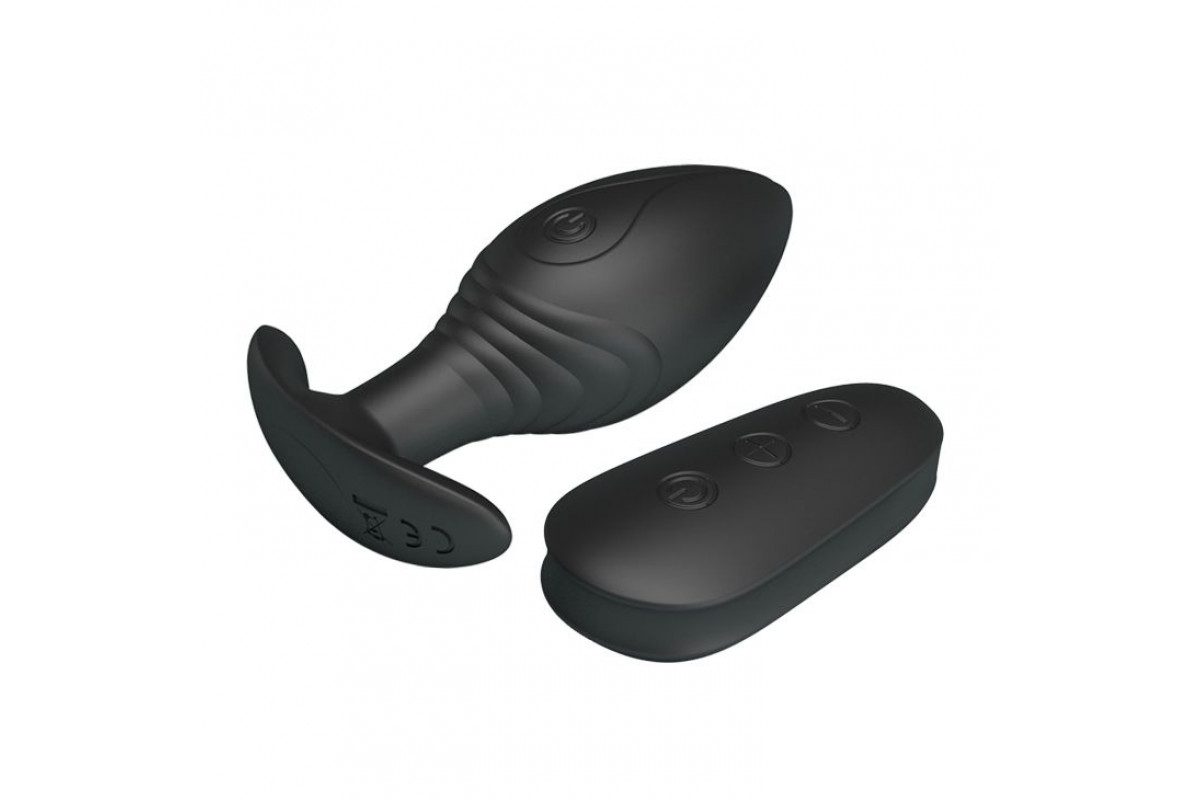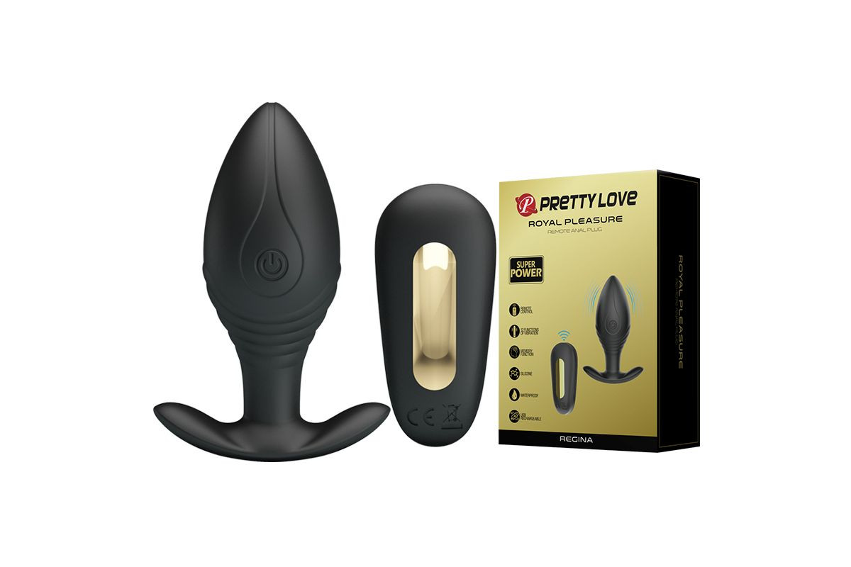 Роскошная черная анальная вибропробка Regina с пультом ДУ. 12 режимов вибрации, управляемых при помощи пульта, и функция памяти. Пробка выполнена из силикона.