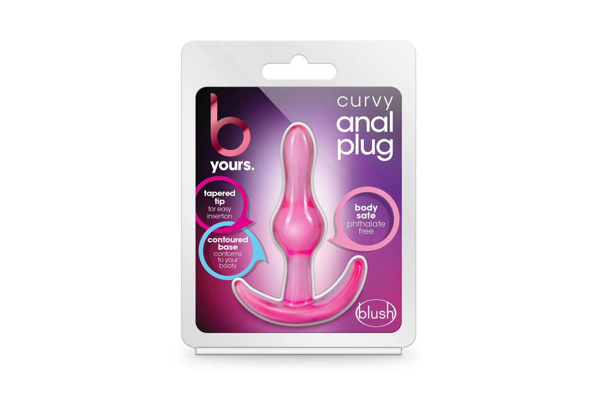 Розовая анальная пробка Curvy Anal Plug. Имеет широкое ограничительное основание.