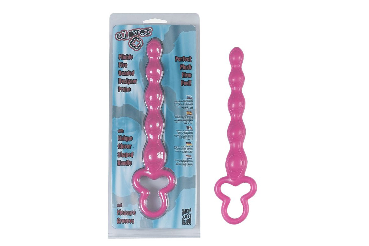 Розовая анальная цепочка Clover Anal Rod. Имеется ручка для удобного введения и извлечения. Постепенно расширяется к ручке в диаметре.