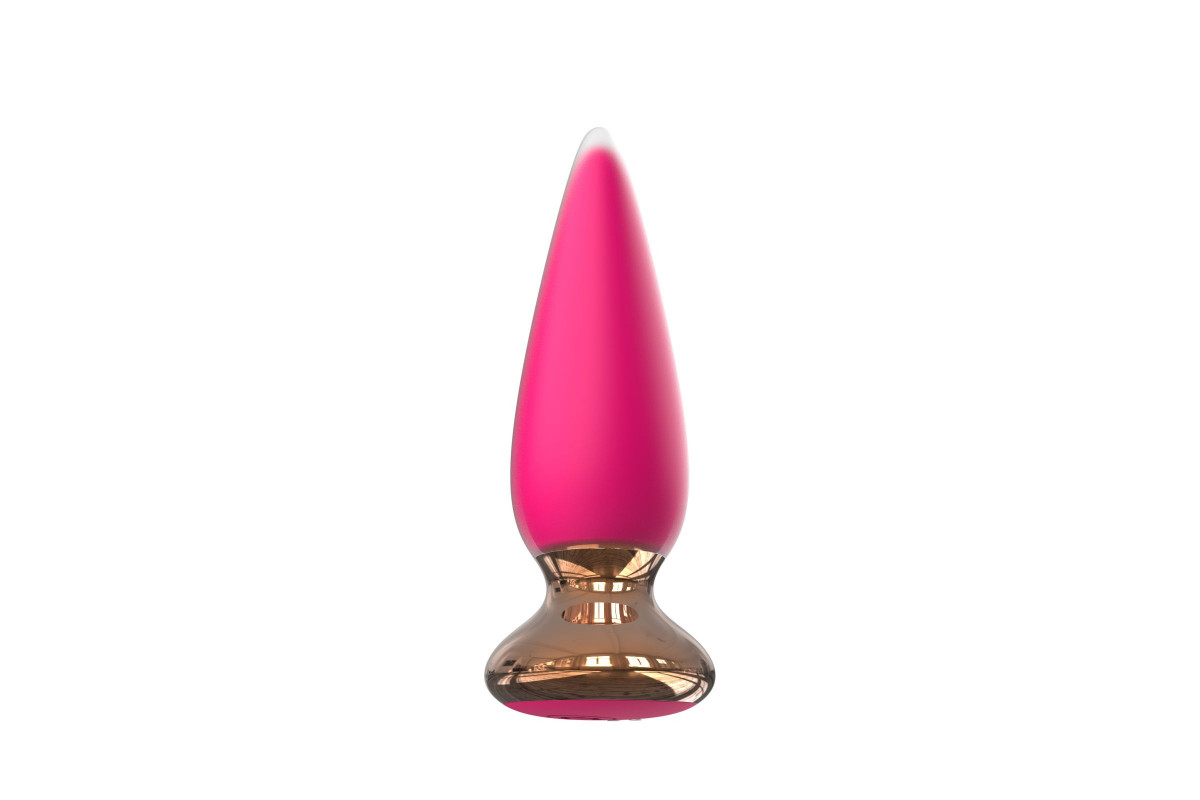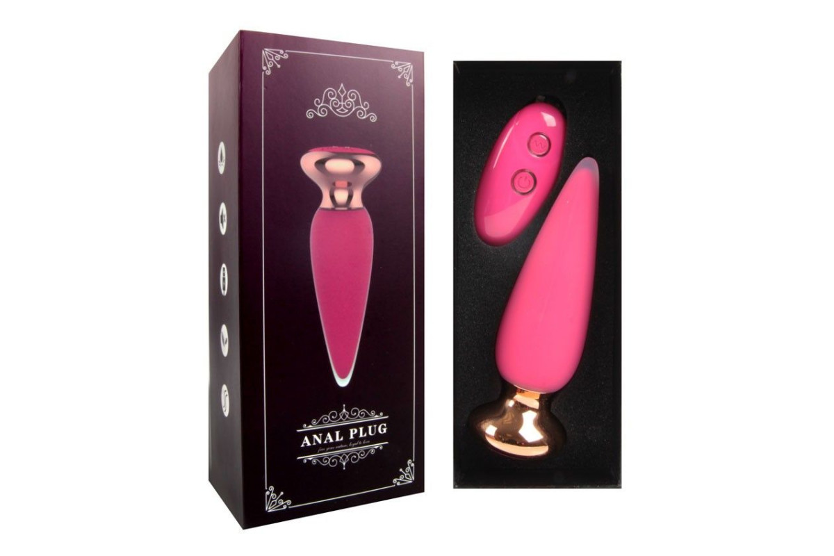Розовая анальная вибропробка Anal Plug с пультом ДУ - 12 см.