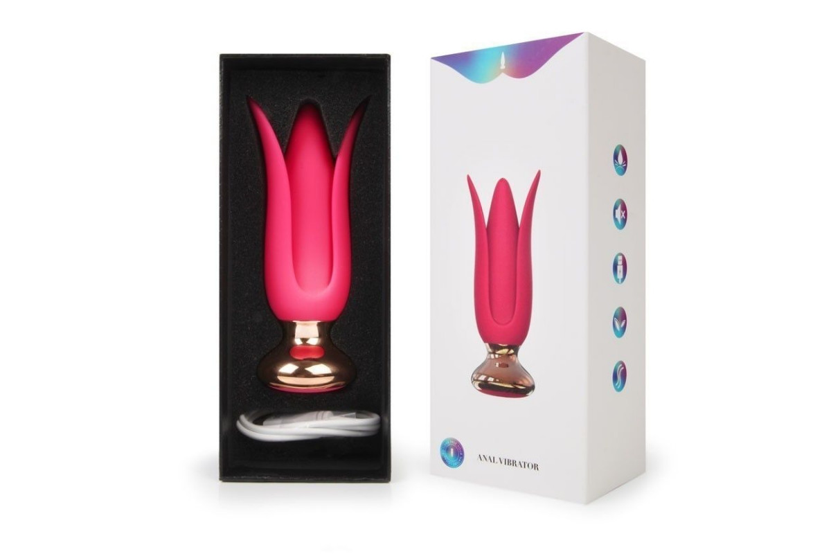 Розовая анальная вибровтулка с лепестками. 10 режимов вибрации. Рабочая длина - 9,5 см.