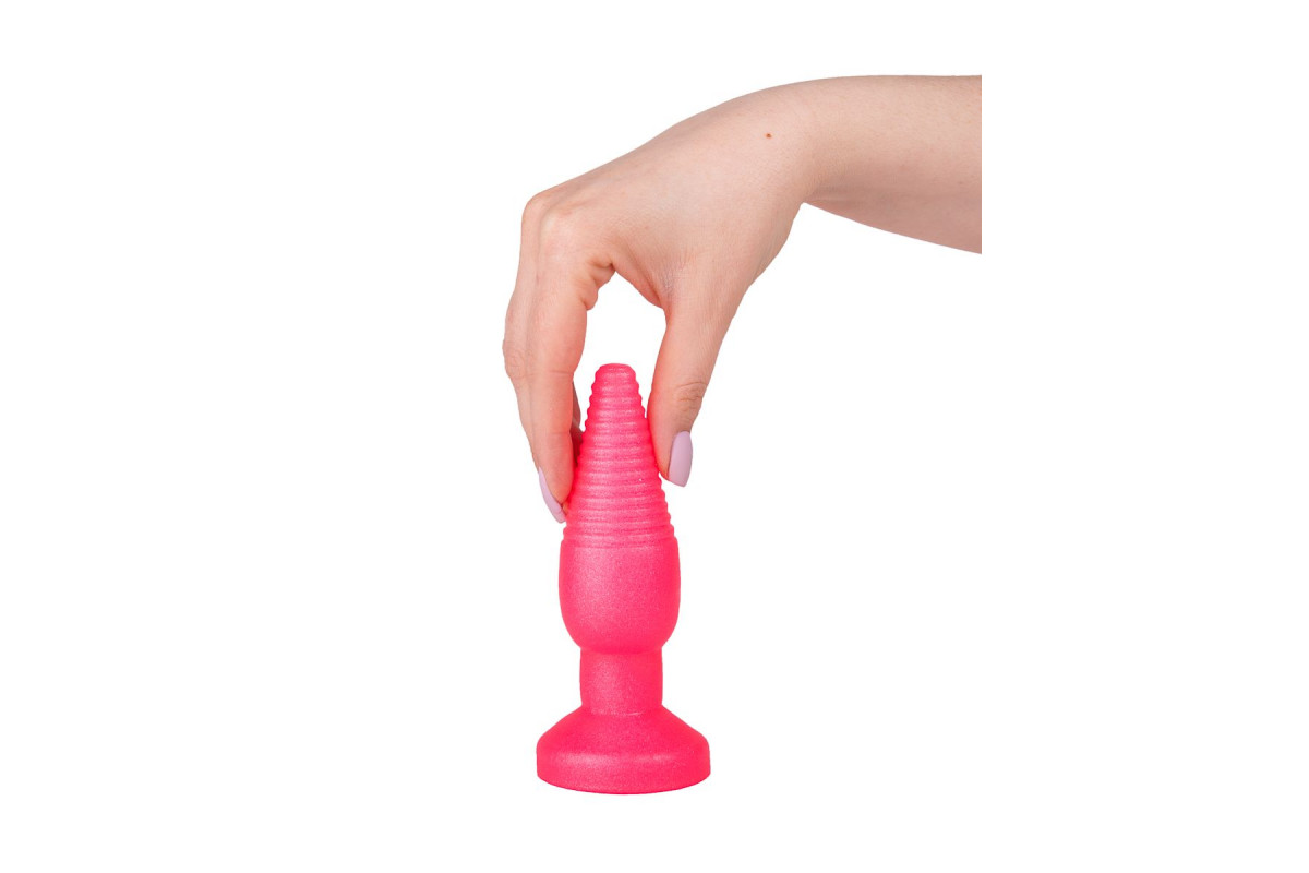 Верхняя часть розовой пробки имеет ребристую поверхность, что лучшим образом скажется на силе приятных ощущений от скольжения стимулятора внутри ануса.