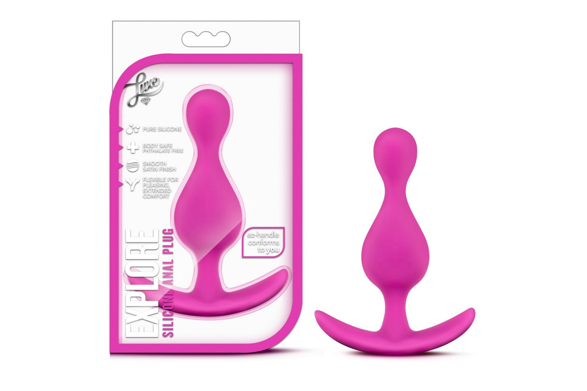Розовая фигурная анальная пробка Luxe Explore - 11,4 см.